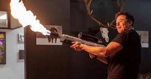 Elon makes his money by Co founding PayPal. With banking and money transferring platforms in place he sold the enterprise to eBay an auctioning platform that already sells military gear and vehicles. Transitioning to Tesla. Arguably single handedly making electric cars relevant. Elon and I assume, his predominantly blue wearing minions not only begin manufacture of electric cars but also systems that allow them to remote drive and capture tons of personal data. Around this time Elon announces his "Boring" Company and produces a limited run of flame throwers, the beginning of Elons Arms division?
